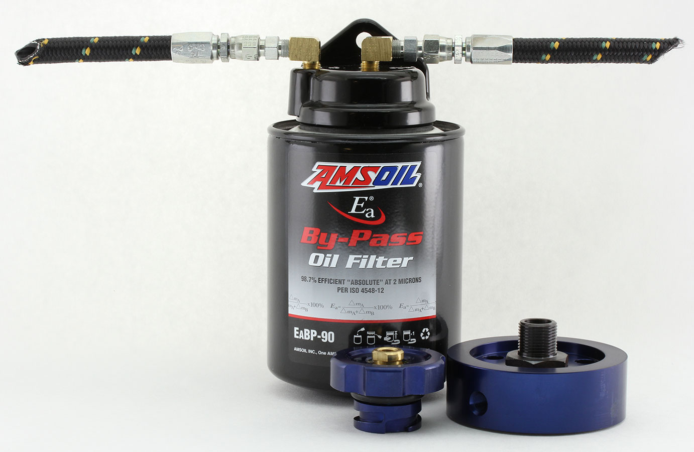 AMSOIL EaBP Filters have an efficiency of 98.7 percent at two microns. At normal operating RPMs the EaBP Filter will filter all of the oil in a typical five quart sump in less than 10 minutes.